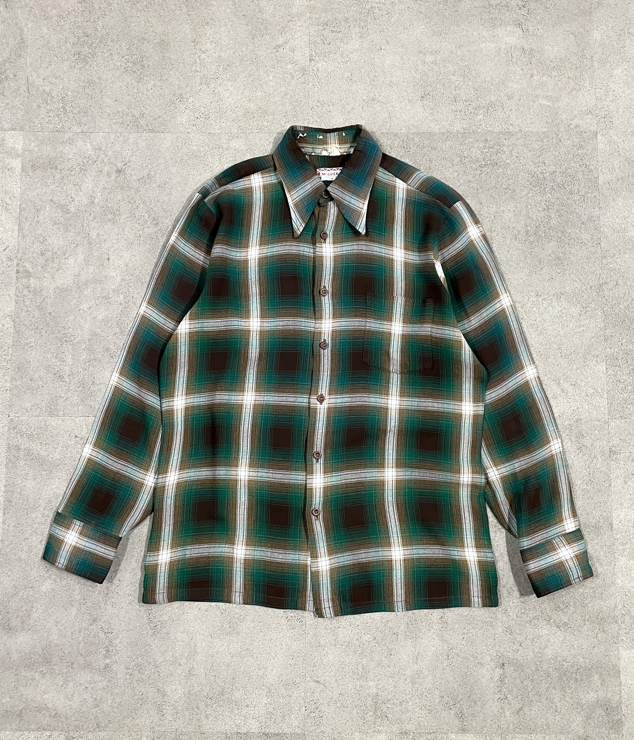 60~70年代に制作されたレーヨンのオンブレチェックシャツです。