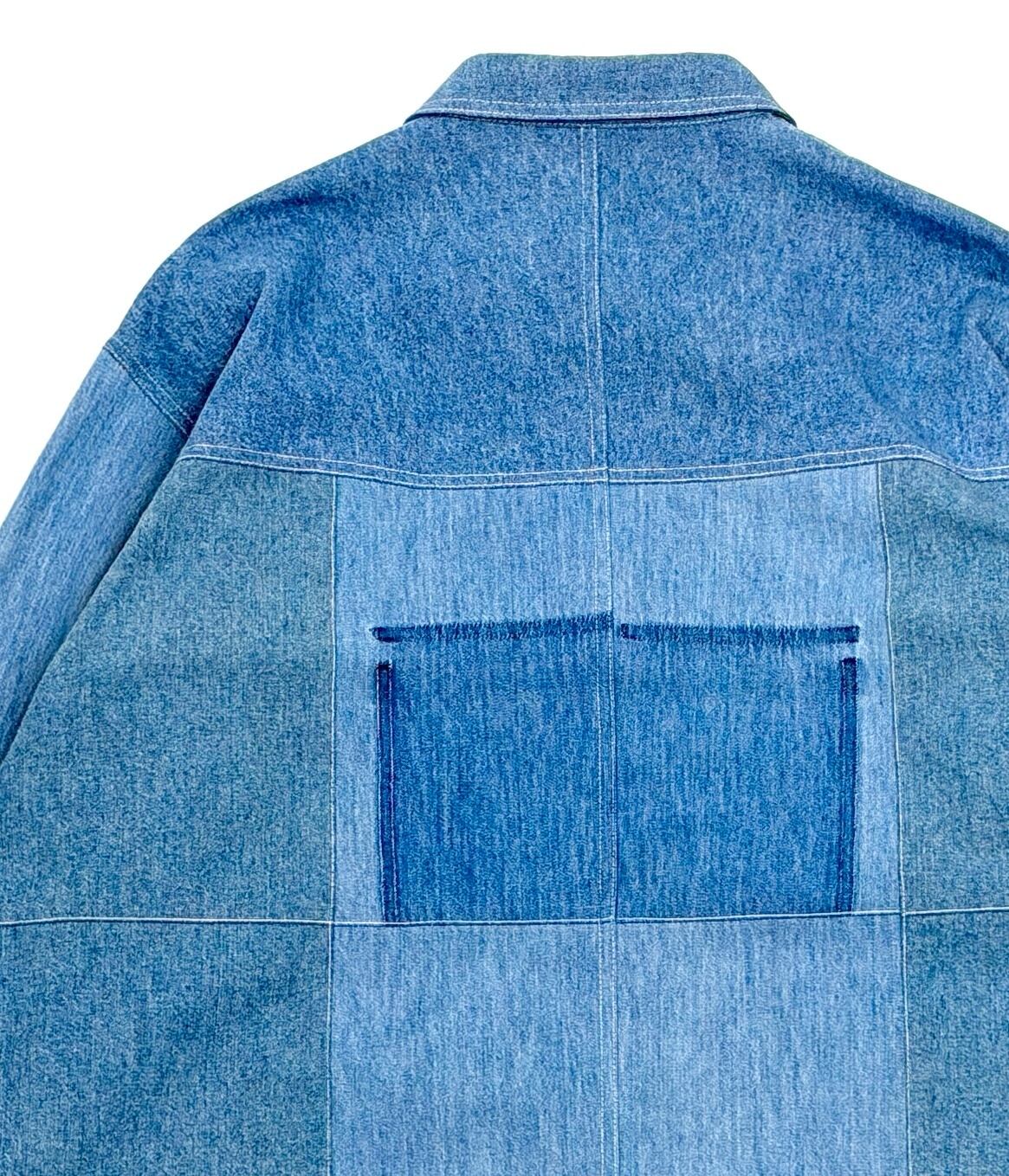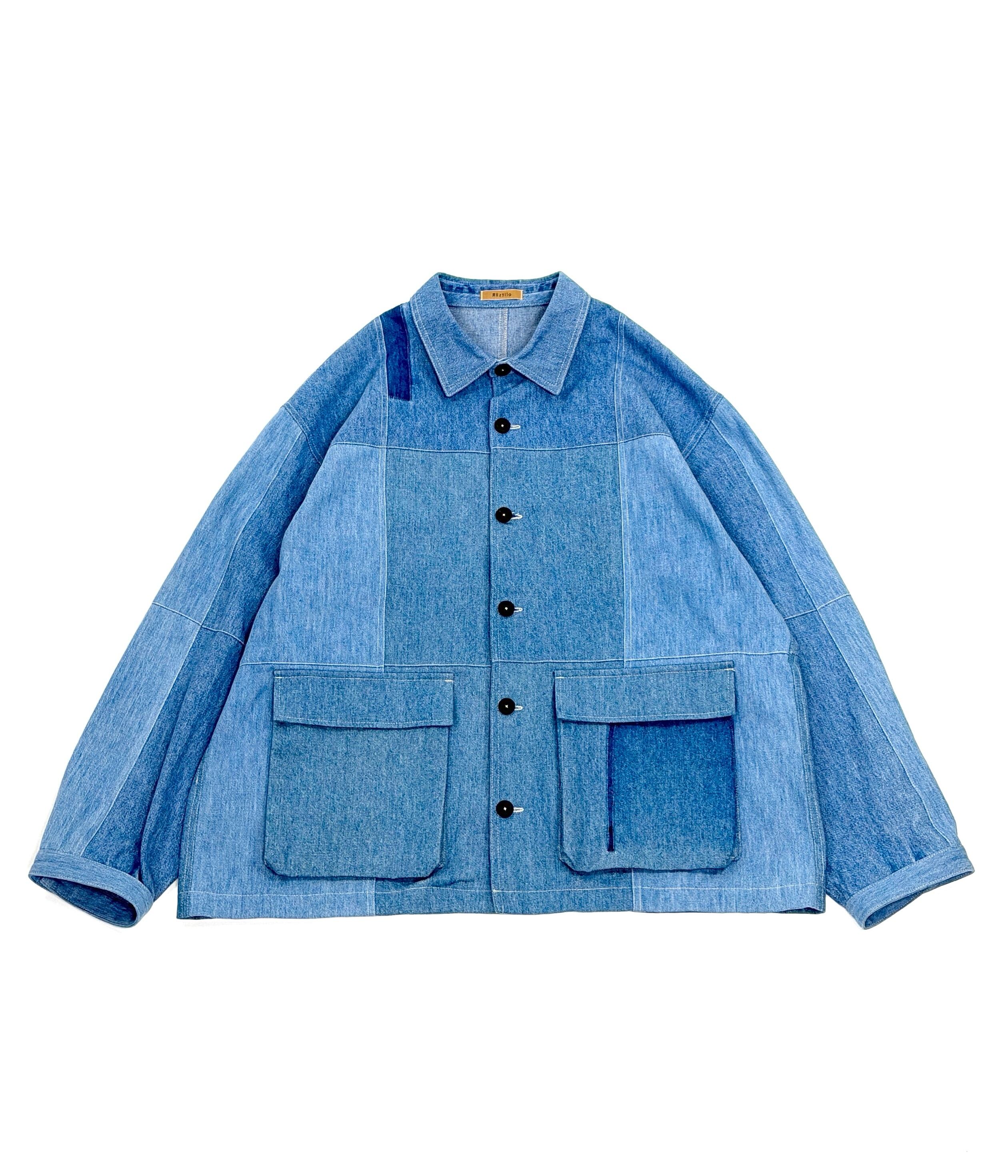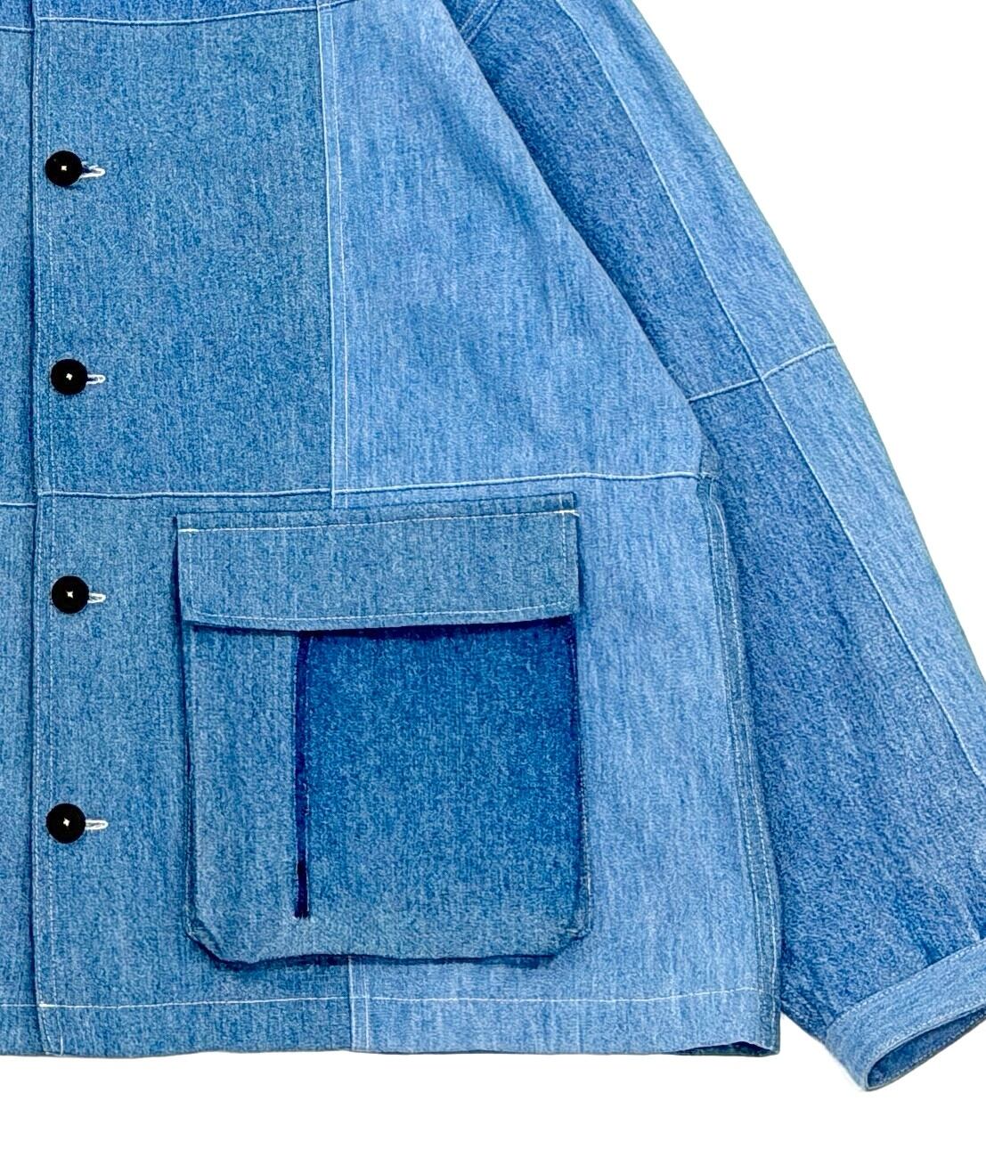 古着の生地を使用し、新たにパターンを引いて仕立てられた一着。
